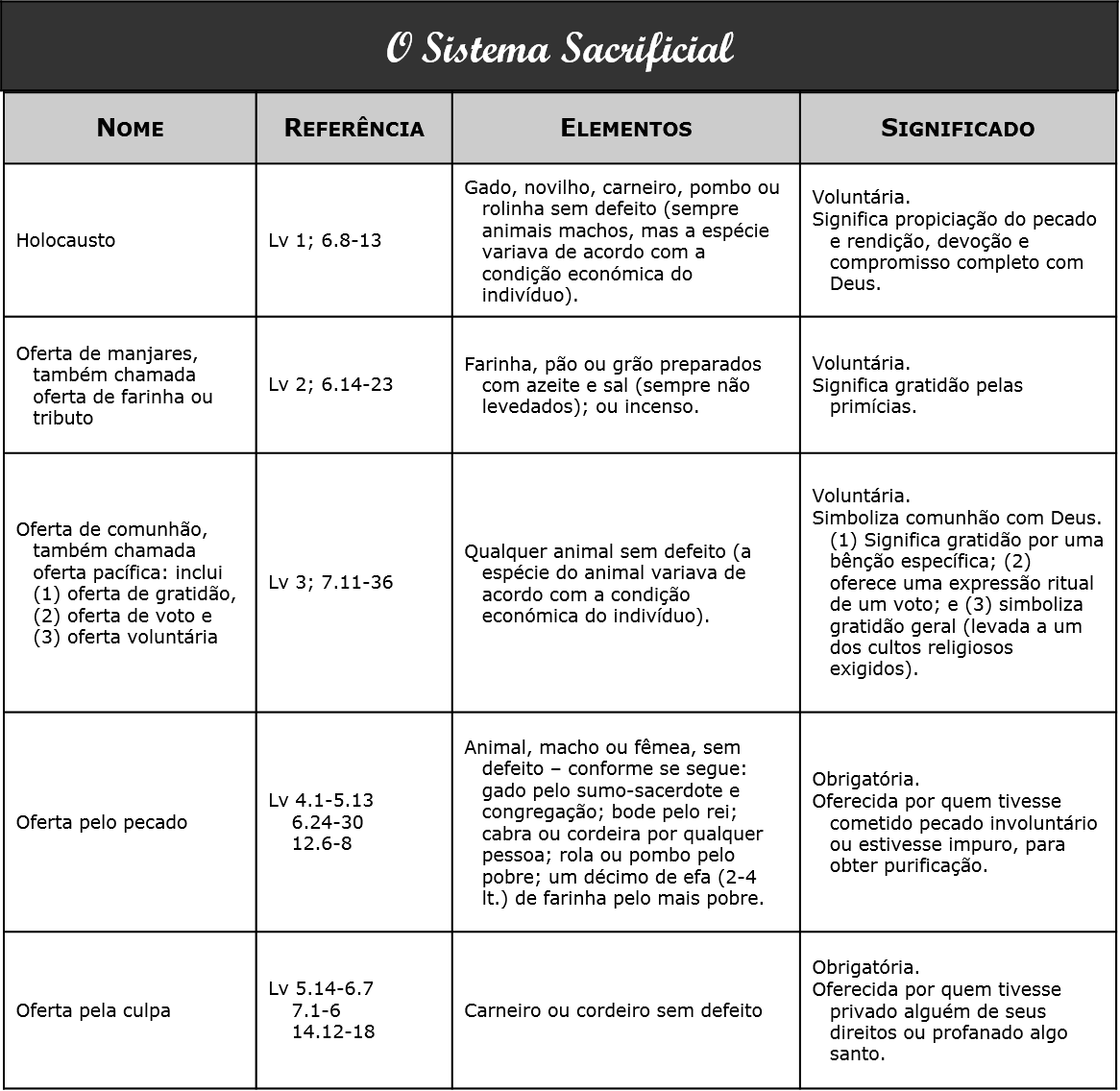 Mensagem A presença santa de YHWH entre Seu povo exige purificação regular por meio de sacrifícios apropriados e separação nacional de toda sorte de impureza.
